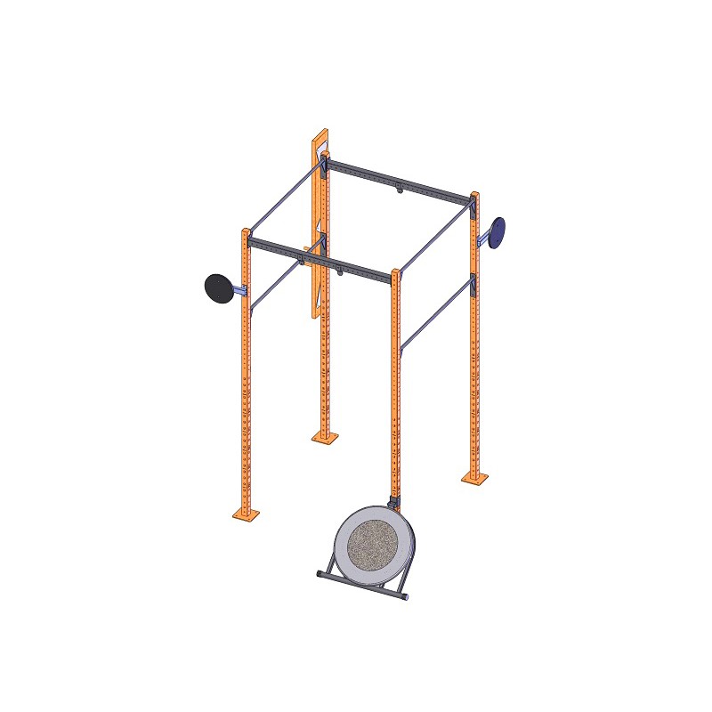 Struttura a quattro montanti dotata di barre trazioni, peg board, trampolino e bersagli per wall ball.