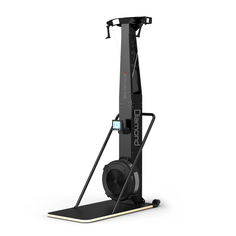 Lo SKI AKTIVE-P di DIAMOND apre la porta ai cultori della preparazione atletica del nordic skiing, sul mondo dei protocolli di allenamento dedicati. Caratterizzato dall’inconfondibile forma ad “Y” del suo telaio, SKI AKTIVE-P poggia su un’ampia pedana in legno che lo rende autoportante. Completamente indipendente dalla alimentazione di rete può essere collocato in qualsiasi posizione senza necessità di vicinanza a prese elettriche. Attrezzo isolaterale per definizione, consente molteplici combinazioni di lavoro, grazie anche alla scalabilità del regolatore di sforzo su 10 livelli. Le manopole ergonomiche replicano l’impugnatura delle racchette tipiche della specialità; il movimento degli arti superiori, debitamente accompagnato dalla flessione ritmica delle gambe, asseconda la progressione dell’utente dal warm-up al defaticamento post workout. Il tutto monitorato attraverso il display che registra i principali parametri di performance.