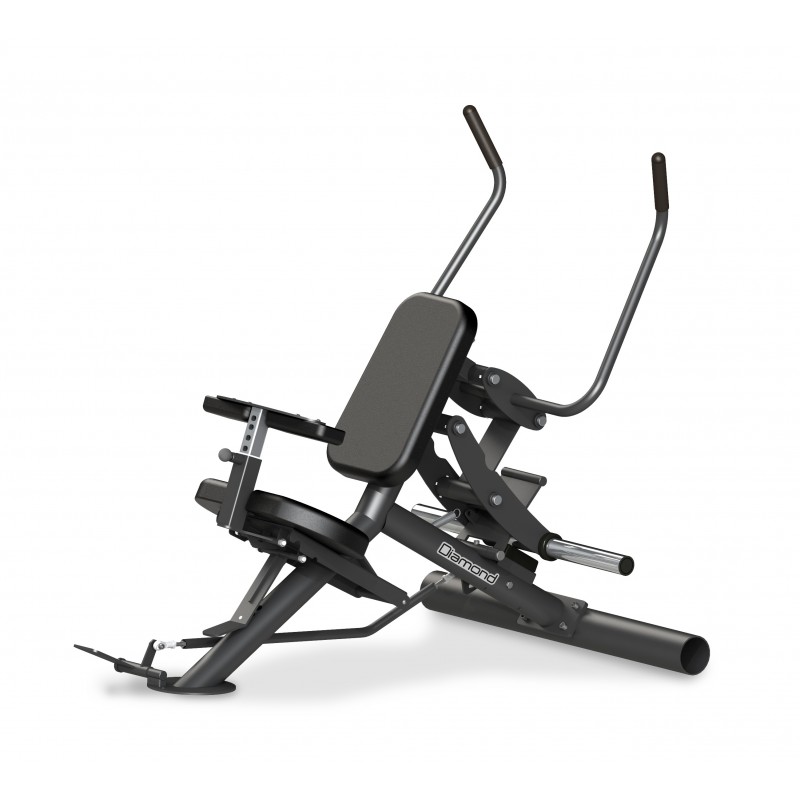 l Belt Squat DIAMOND con Accessorio Dips è un macchinario innovativo che permette all’utente di riprodurre il movimento di accosciata (squat) con un sovraccarico senza andare a gravare sulla schiena dell’utilizzatore. La macchina infatti prevede l’utilizzo di una cintura di sollevamento vincolata alla vita e collegata ad una pedana di stacco, caricabile...