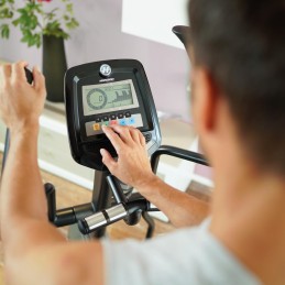 Grazie al display LCD da 5,5”, puoi monitorare in tempo reale tempo, distanza, velocità, calorie, watt, RPM, livello di resistenza e frequenza cardiaca (rilevabile tramite impugnature a contatto o fascia Polar).