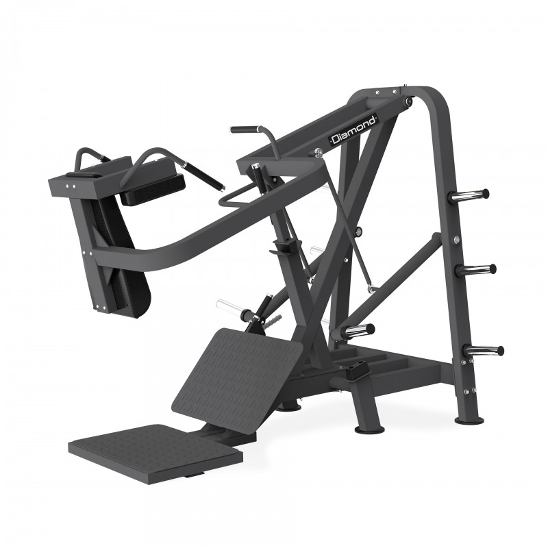 Il Super Squat della linea 500 DIAMOND è un macchinario avanzato progettato per l’allenamento completo della muscolatura delle cosce, con un focus specifico sui quadricipiti. La sua traiettoria guidata, molto simile a quella espressa nei più comuni Pendulum Squat, offre un movimento unico, combinando i benefici dello squat con quelli della leg press a 45°, garantendo un’esecuzione sicura ed efficace. Il controbilanciamento a molla riduce il peso iniziale della macchina, rendendola accessibile anche a utenti principianti o con esigenze specifiche. La pedana ampia e sicura realizzata in materiale antiscivolo, garantisce una posizione stabile durante ogni ripetizione, inoltre è regolabile su diverse inclinazioni per fornire il massimo stimolo allenante. Grazie alla traiettoria guidata e alle leve di sicurezza, l’utente può allenarsi in tutta tranquillità, riducendo il rischio di infortuni.
